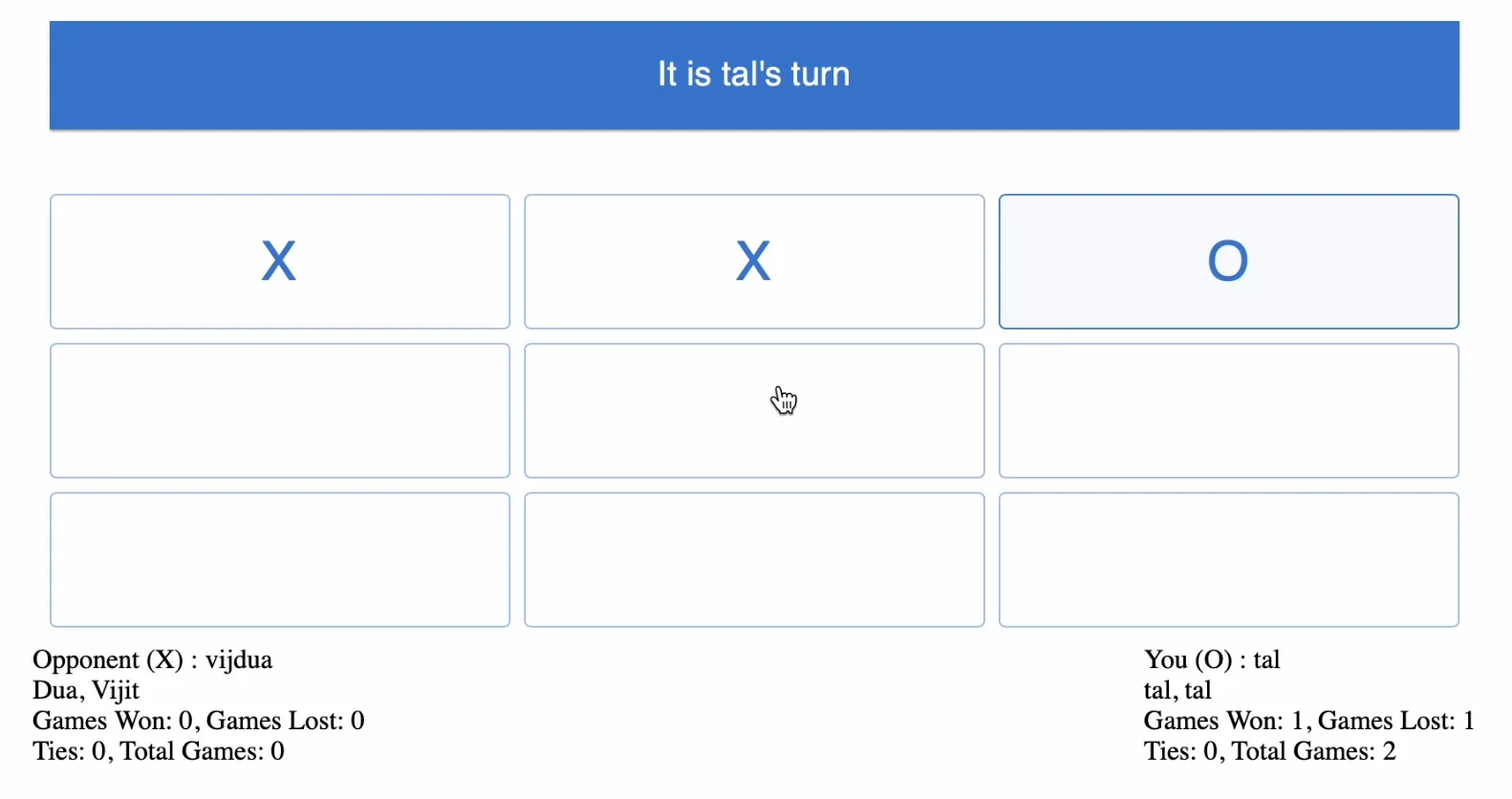 Built a multiplayer tic-tac-toe game.